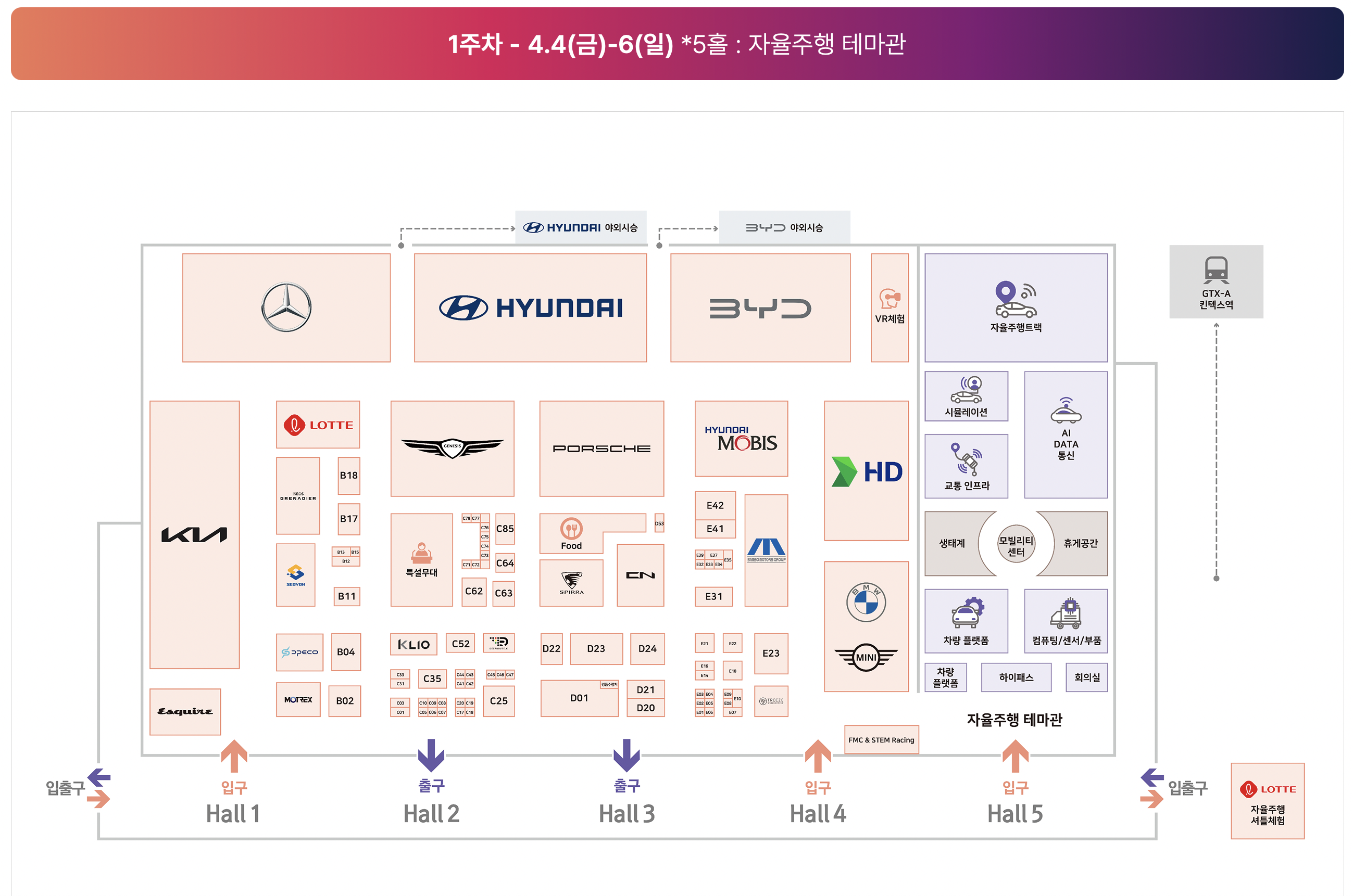 - 스타트업 존에서는 혁신적인 아이디어를 가진 신생 기업들이 선보이는 독창적인 모빌리티 기술을 만나볼 수 있습니다. AI 기반 교통 관리 시스템, 스마트 도로 솔루션 등 매니악한 관람객들의 호기심을 자극할 만한 기술들이 대거 전시됩니다.